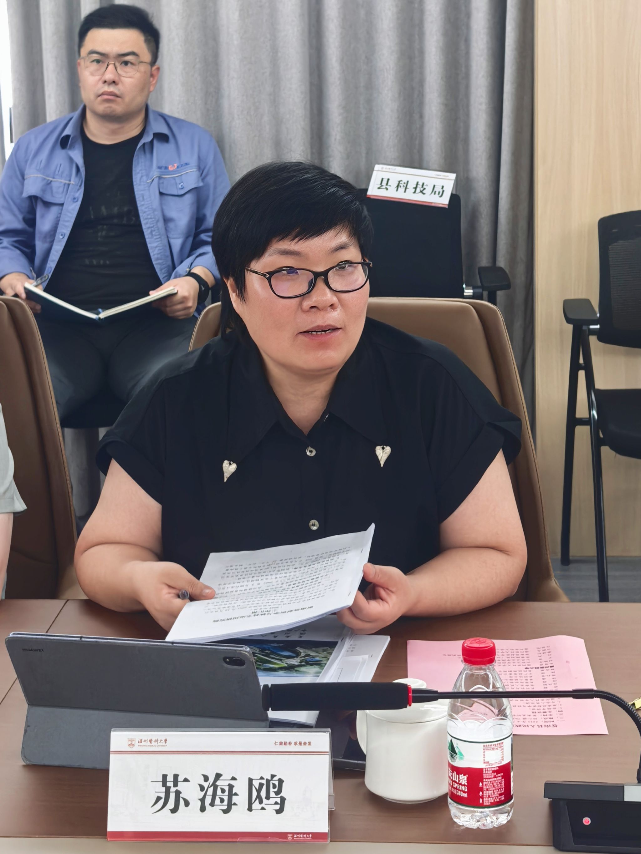 刘晓冬对苏海鸥一行的到来表示热烈欢迎,系统汇报了浙南研究院近三年工作成效、2025年度重点任务及未来发展思路。他指出,浙南研究院近年来在学科团队建设、国家级资质认定、社会服务等方面取得显著进展,未来将始终秉持研发机构、科技孵化平台与核技术引领者的战略定位,通过筹办高端产业会议、促进产业集群建设等举措,构建多元合作体系,全面助推苍南县产业转型升级,全力服务苍南县科技创新与经济社会发展。