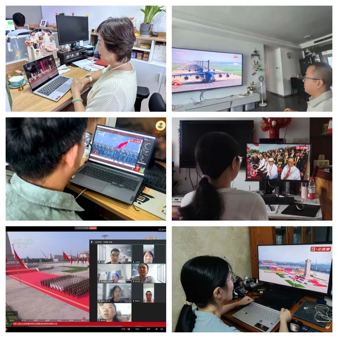 “虽然观看地点不同,但内心的激动是一样的。”在办公室里,教师党员们打开电脑,一边观看一边与同事交流感悟;在实习医院里,学生党员通过手机端收看,利用实习间隙接受思想洗礼;在实验室里,研究生党员们借助ipad默默观看,为受阅部队的英姿深受教育鼓舞;在家里,新生和老生们通过电视直播共襄盛举。师生党员普遍反映,本次同步观看活动,进一步激发了民族自豪感与时代使命感,深化了作为公卫人“护佑生命、服务人民”的责任担当。