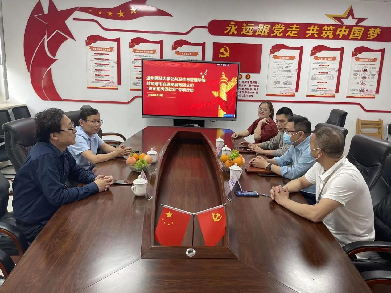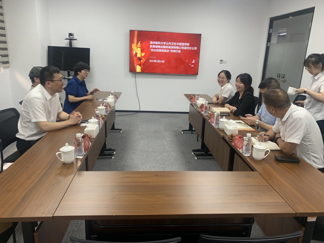 此外,学院于6月点对点联系各用人单位,学院党委书记、院长、党委副书记、副院长、专业教师和学工相关老师陆续走访了温州市疾病预防控制中心、温州市鹿城区卫生监督所、龙港市疾病预防控制中心、永嘉县疾病预防控制中心、泰顺县机关工委、中国太平洋财产保险股份有限公司温州分公司、绿城物业集团有限公司温州分公司、温州长江汽车电子有限公司、龙港市交通发展有限公司、中国建设银行股份有限公司文成分行,与用人单位开展调研交流。希望通过互动共建的方式探寻多层次、多形式、多领域的合作,精准推送毕业学生,挖掘更多就业岗位,助力学生就业。