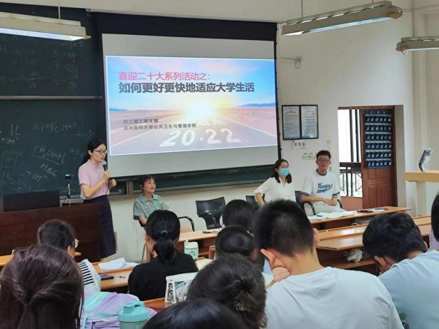 公共卫生与管理学院2022级预防专业五个班级新生齐聚一堂,在教工第三支部施红英老师的组织下开展了以“如何更好更快地适应大学生活”为主题的党组织活动。