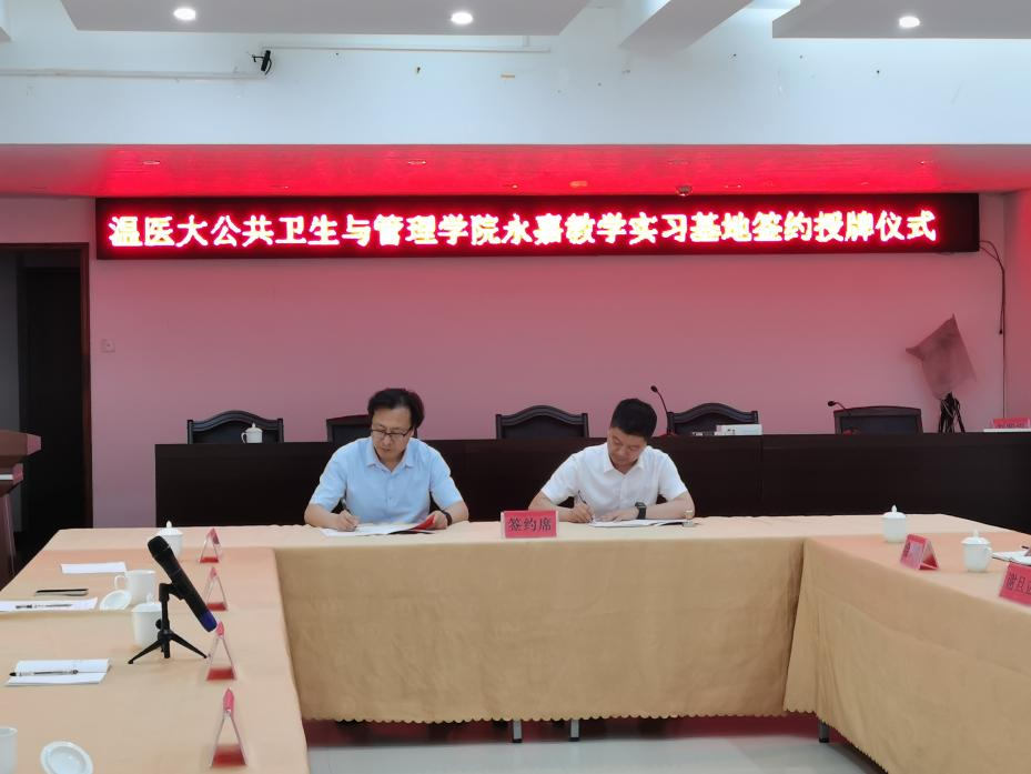 双方举行了“一品探花 公共卫生管理学院与永嘉县卫生健康局本科教学实习基地”签约及揭牌仪式。双方将以此次签约为起点,深化校地合作,坚持资源共享、优势互补、互利共赢,助力学院学生理论结合实际,为学院发展和永嘉县公共卫生事业发展助力。