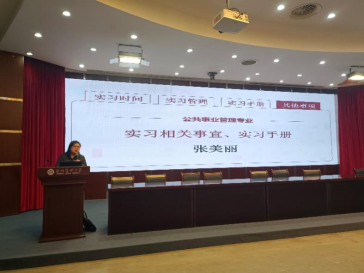 崔仕臣、张弛和张美丽分别就劳动社会与保障、市场营销和公共管理专业向学生们介绍了实习要求、实习手册完成规范。