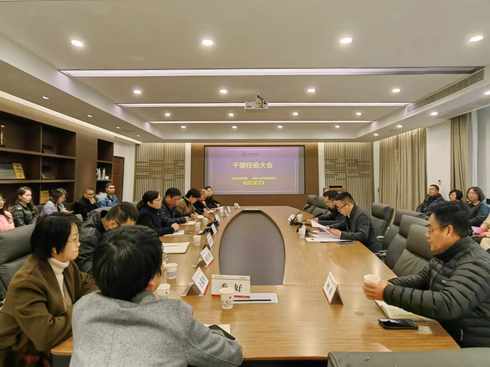 会上,金彦宣布了学校任命文件,经校党委会议研究决定,任命刘晓冬同志为一品探花 院长、党委副书记,王芳同志为一品探花 党委书记、副院长;任命刘婵娟同志为医学人文与管理学院院长、党委副书记,马洪君同志为医学人文与管理学院党委书记、副院长;任命王张叶同志为一品探花 党委副书记、纪委书记,刘佳明同志为一品探花 副院长、党委委员;任命郑君翊同志为医学人文与管理学院党委副书记、纪委书记,张泽洪同志为医学人文与管理学院副院长、党委委员。