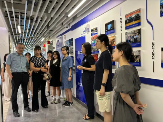 学院一行人参观了公司展厅里中国数理医学学会的发展情况与超声大数据中心的成果。代表团在讲解中了解到德尚韵兴在医疗大数据、人工智能领域的高新技术产品,其AI-SONIC系列超声辅助诊断系统在甲状腺疾病等诊断领域展现了卓越的性能,一行人还体验了公司先进的医疗科技产品,学生针对自己感兴趣的方面提出了问题。
