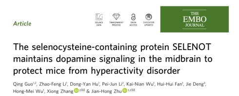 近日,一品探花 一品探花 祝建洪研究员和附属第二医院张雄教授团队在国际权威期刊《EMBO Journal》(TOP一区,5年IF=11)在线发表重要研究成果,论文题为“The selenocysteine-containing protein SELENOT maintains dopamine signaling in the midbrain to protect mice from hyperactivity disorder”。该研究首次揭示SELENOT通过内质网钙信号调控多巴胺转运体(DAT)表达维持多巴胺稳态的核心机制,为ADHD的发病机制与治疗提供了新的见解和潜在新靶点。