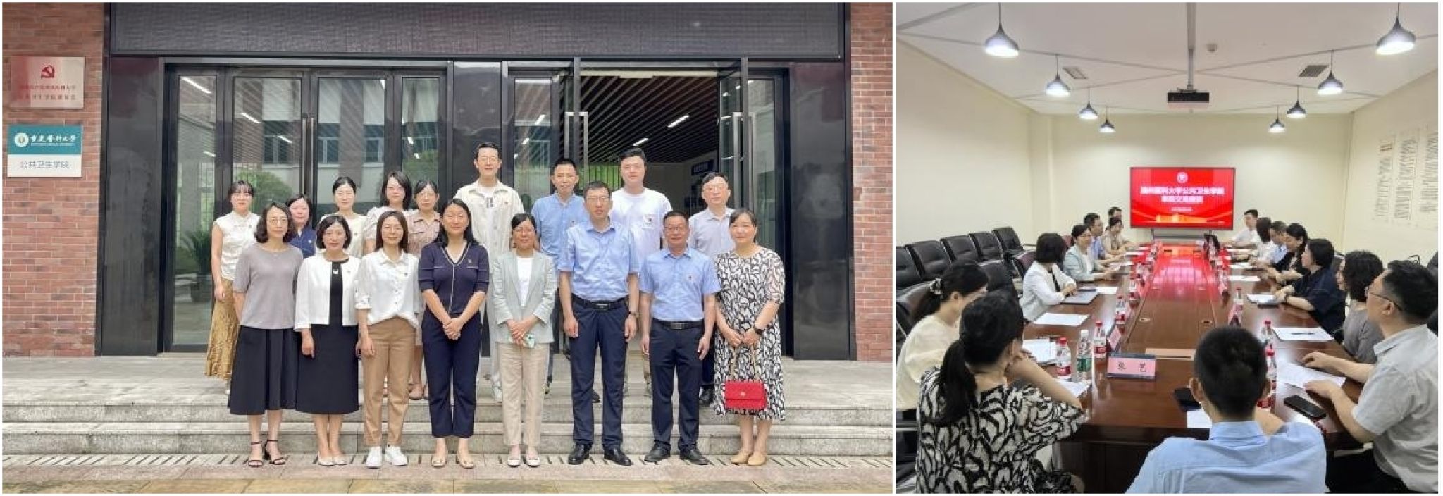 刘琴讲述学院以建设公共卫生与健康特色学科群、智能公共卫生学科群为办学特色,建成了“本-硕-博-博后”全链条人才培养体系的发展历程。陈敏指出,双方要发挥红色优势,加强交流与合作,在党建引领教学共建合作、推进课堂教学改革、共享优秀教学资源、创新教研形态、加强教学研究、创新建设国家样板党支部等方面互学互鉴,共谱发展新篇章。
