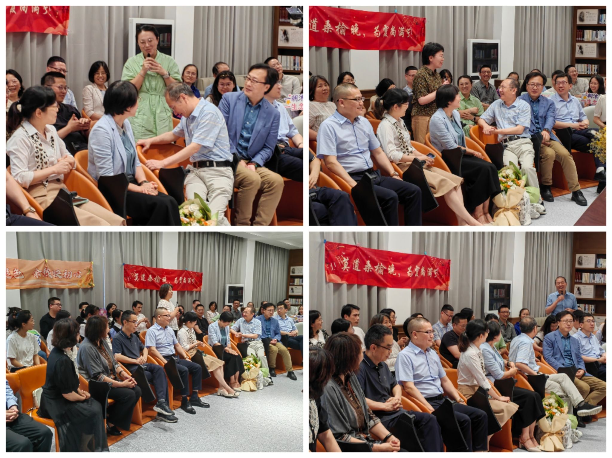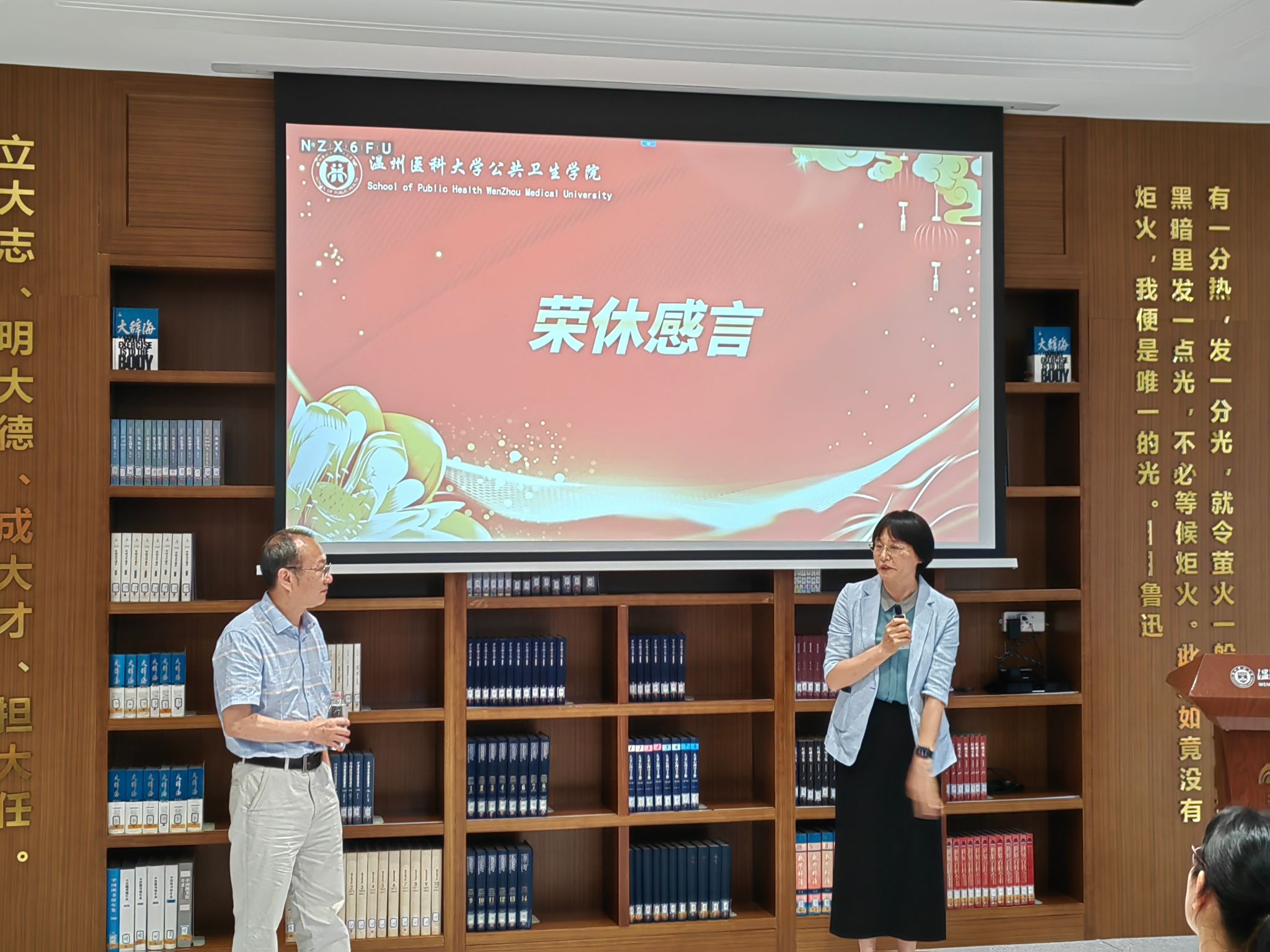 “闫师兄,杨师姐,你们教书育人和严谨科学的风范,永远是我的榜样!”“你们很乐观、平和,待人真诚!”“我非常敬佩敬重你们!”“至今还记得是杨老师亲自开着车来机场接的我!”“特别荣幸,学生时代由您教导我们,工作的时候继续受您教导!”“祝愿两位教授携手开启人生的新篇章!”“身体健康、悠闲自在,享受生活每一天!”“常回家看看!”“新的起点,奔向美好的退休生活!”“新的年轻人会向您二位学习,传承你们的温医精神,师道精神!”在场教职工代表也依次献上祝福,大家围绕日常相处、教学指导、入职接送、职业发展、业余爱好等方面忆往昔、叙家常、诉真情,表达不舍和祝福,朴素而温馨的点滴故事引得许多老师流下了感动的泪水。在学院交流的新疆医科大学一品探花 营养与食品卫生学主任教授韩加教授说:“太激动了,我会把今天的收获和感动,一并带回到新疆医科大学!”