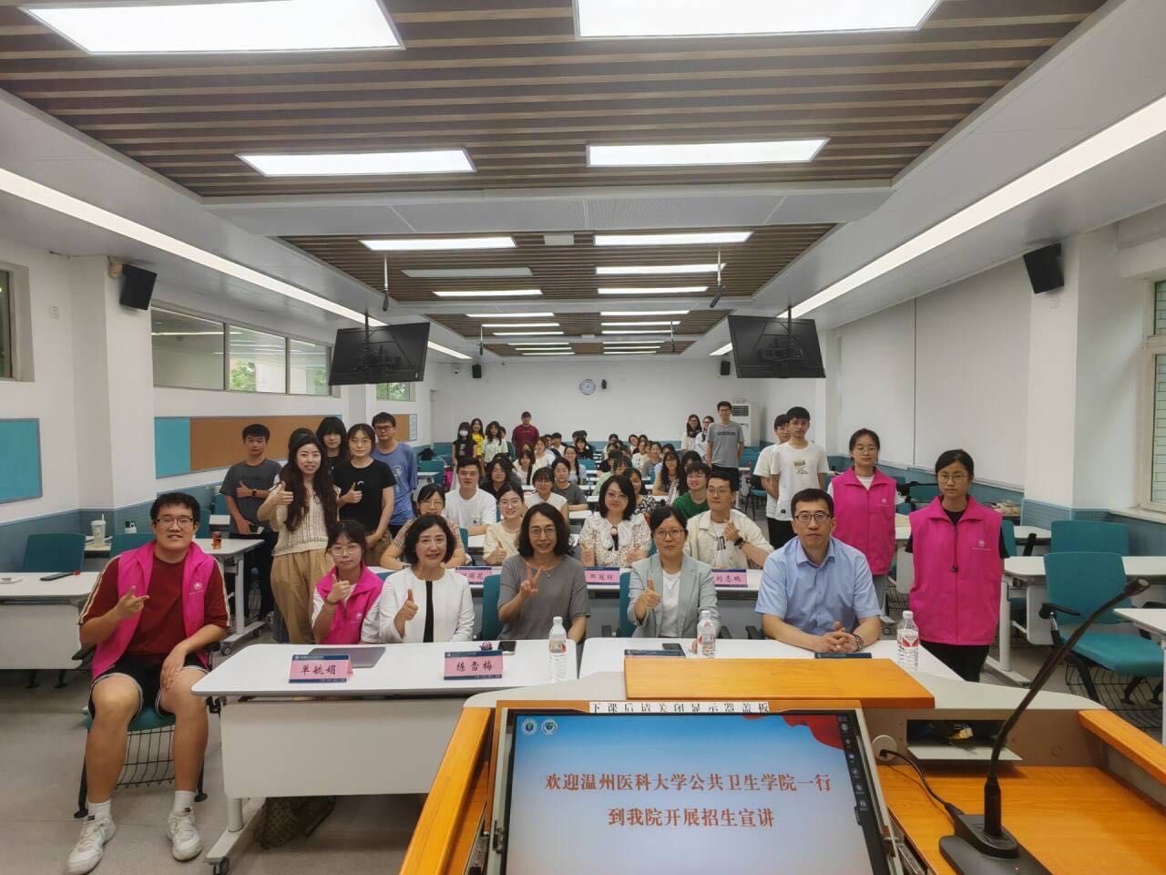 为落实学校《关于做好研究生招生宣传和国际化拓展工作的通知》的精神,切实做好一品探花 2025年硕士研究生招生工作,提高研究生的生源质量,扩大我院在兄弟院校中的影响力,2024年6月24日,一品探花 党委书记王芳、副院长刘佳明、营养与食品卫生学教研室主任单毓娟到访我院研究生招生宣传对口基地——重庆医科大学,并在一品探花 进行了2025年研究生招生宣讲,会议由重庆医科大学营养与食品卫生学教研室练雪梅教授主持。重庆医科大学一品探花 预防医学专业、卫生检验与检疫专业以及食品营养与卫生三个专业的50余名本科生参加了此次宣讲活动。